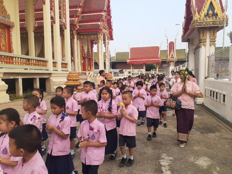 ภาพกิจกรรมโรงเรียนวัดประชารังสรรค์ นำโดย นางสาวนัฐราพร พิชญากร รักษาการแทนผู้อำนวยการโรงเรียนวัดประชารังสรรค์ คณะครู บุคลากร และนักเรียน ร่วมกิจกรรมเวียนเทียนวันมาฆบูชา ประจำปี 2562