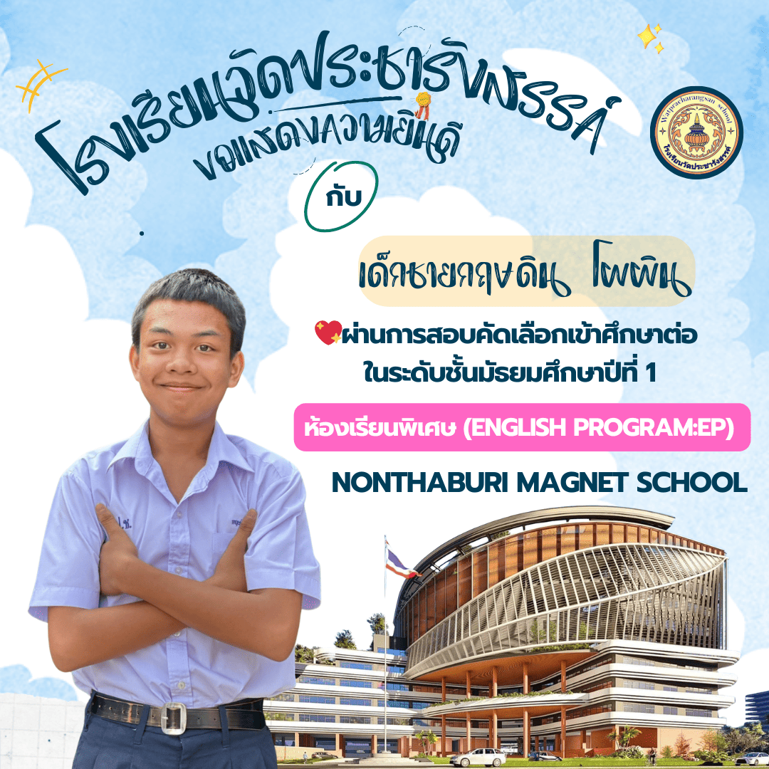 ด.ช.กฤษดิน โผผิน สอบติดห้องห้องเรัยนพิเศษ (English Program:EP) โรงเรียนนนทบุรีวิทยาลัย